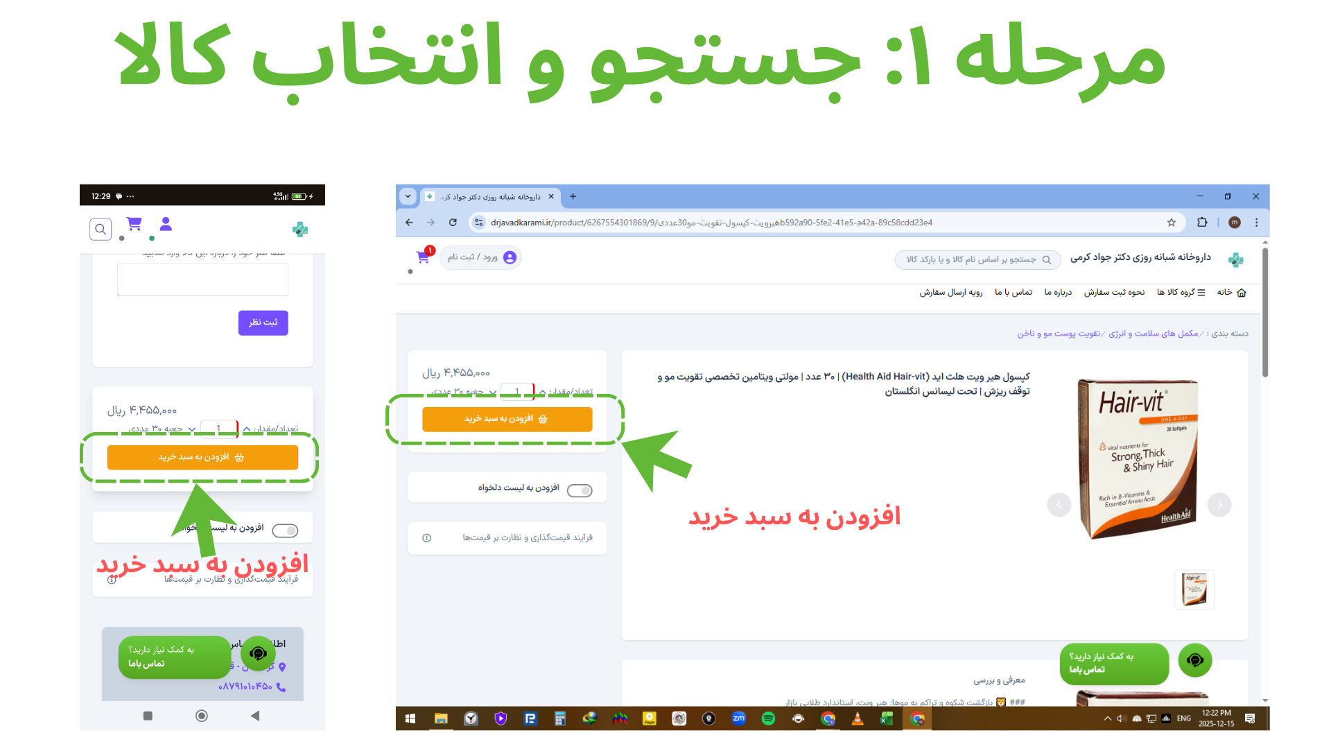 برای راحتی شما، خرید از داروخانه دکتر کرمی در چند مرحلهی ساده انجام میشود: