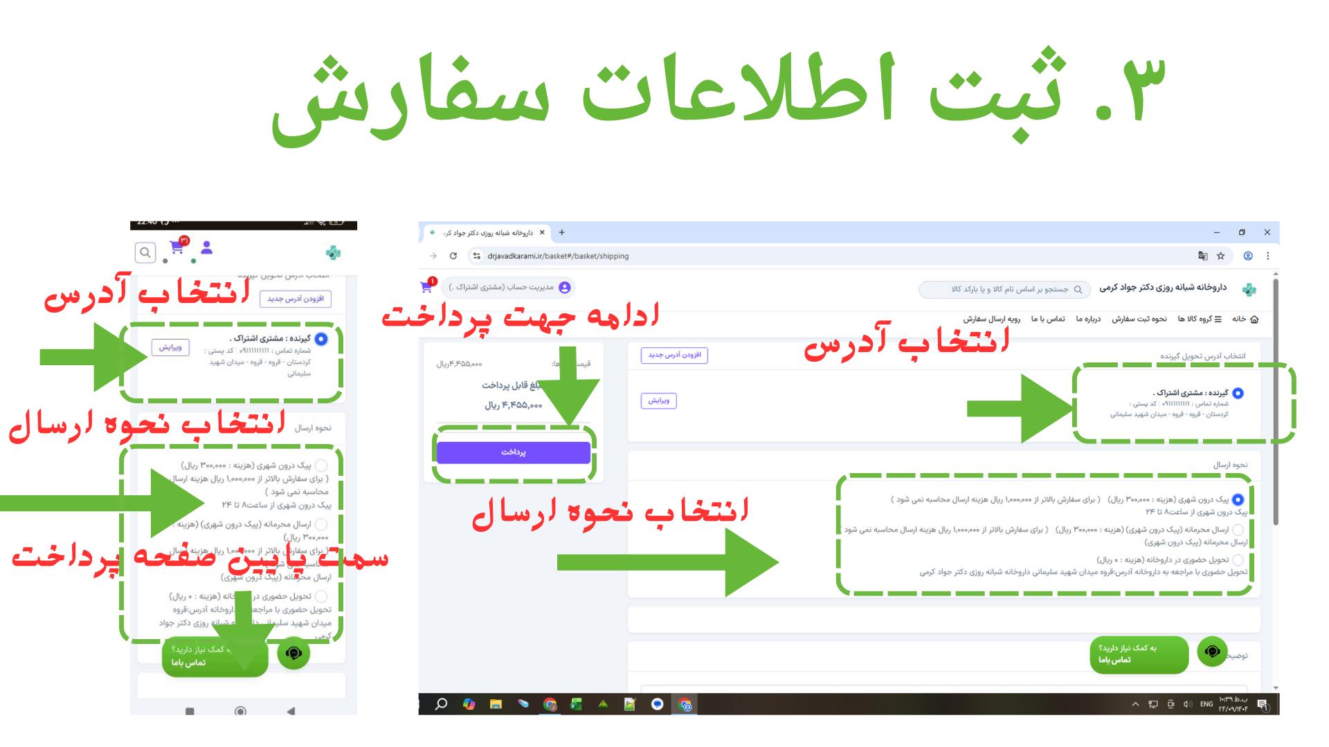 ۳. ثبت اطلاعات سفارش