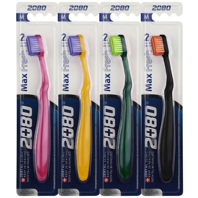 مسواک 2080 مدل مکس فرش (Max Fresh) | برس متوسط با پد تمیزکننده زبان و گونه (ضد بوی دهان)