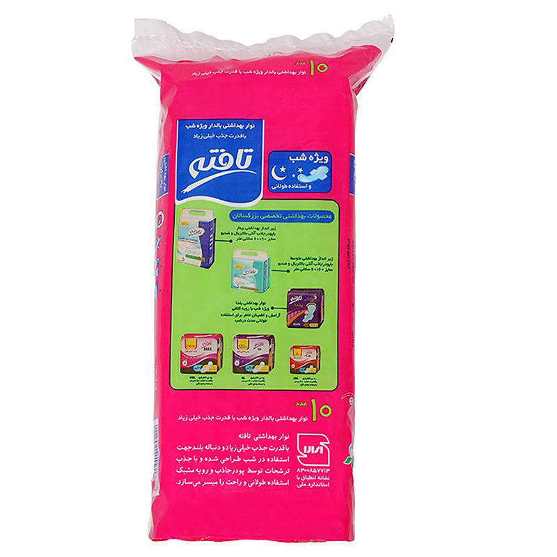 تافته (Tafteh) - نوار بهداشتی بالدار - مدل ویژه شب (Night Special) - ضد نشت با دنباله پهن