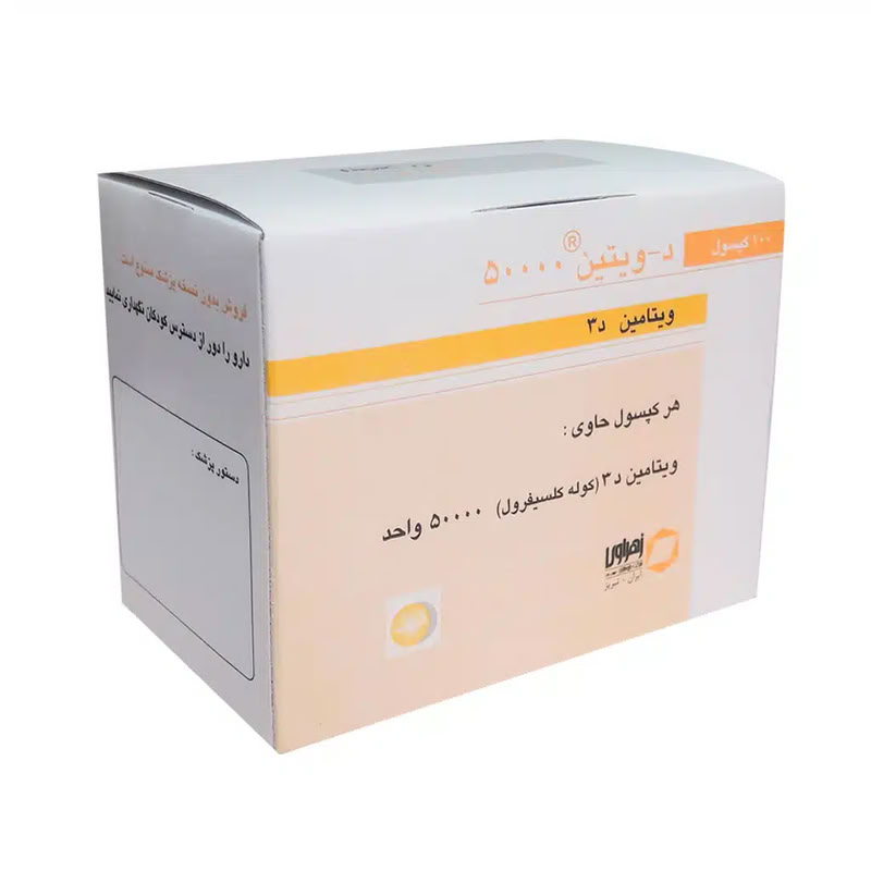 | Vitamin D3 | 50,000 IU | Cholecalciferol (محلول در چربی) |