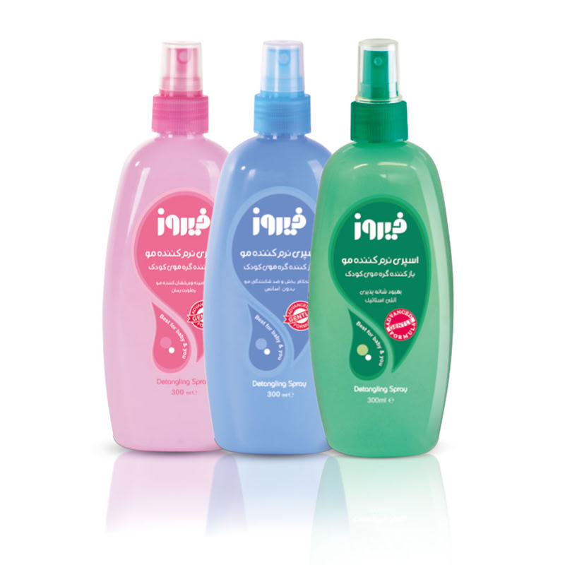 فیروز - اسپری نرم کننده و گره باز کن مو - 300 میل - سبز - شانه پذیری آسان - ضد وز - مناسب بزرگسالان و کودکان