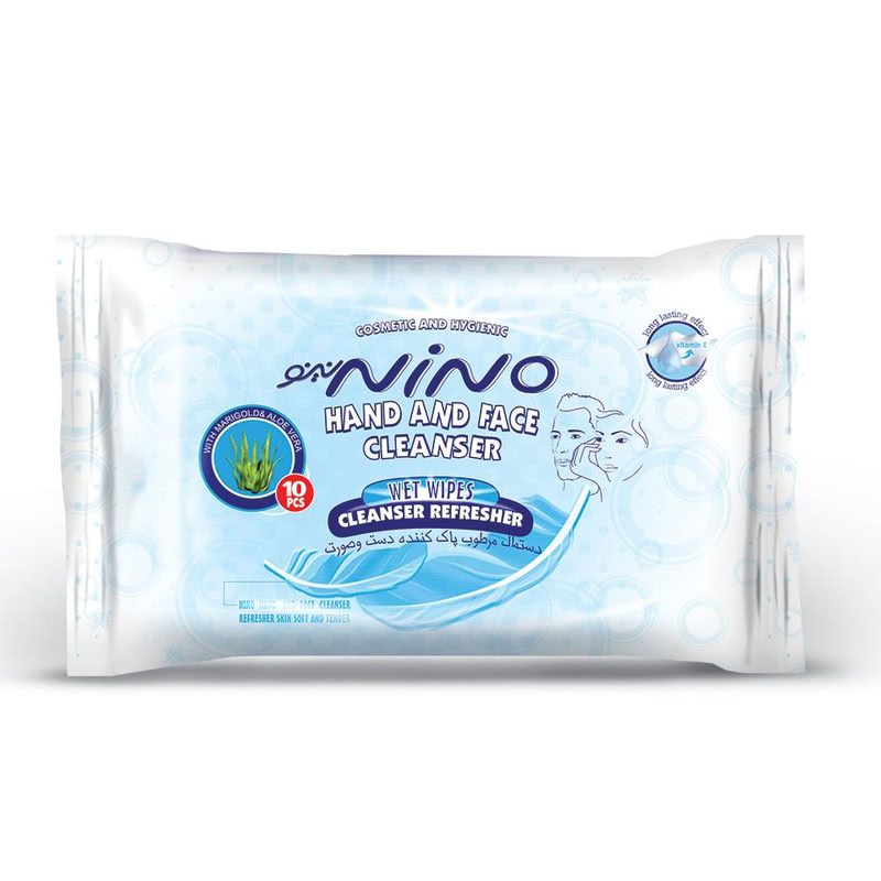 نینو (Nino) - دستمال مرطوب پاک کننده دست و صورت - جیبی 10 عددی - آنتی باکتریال و معطر