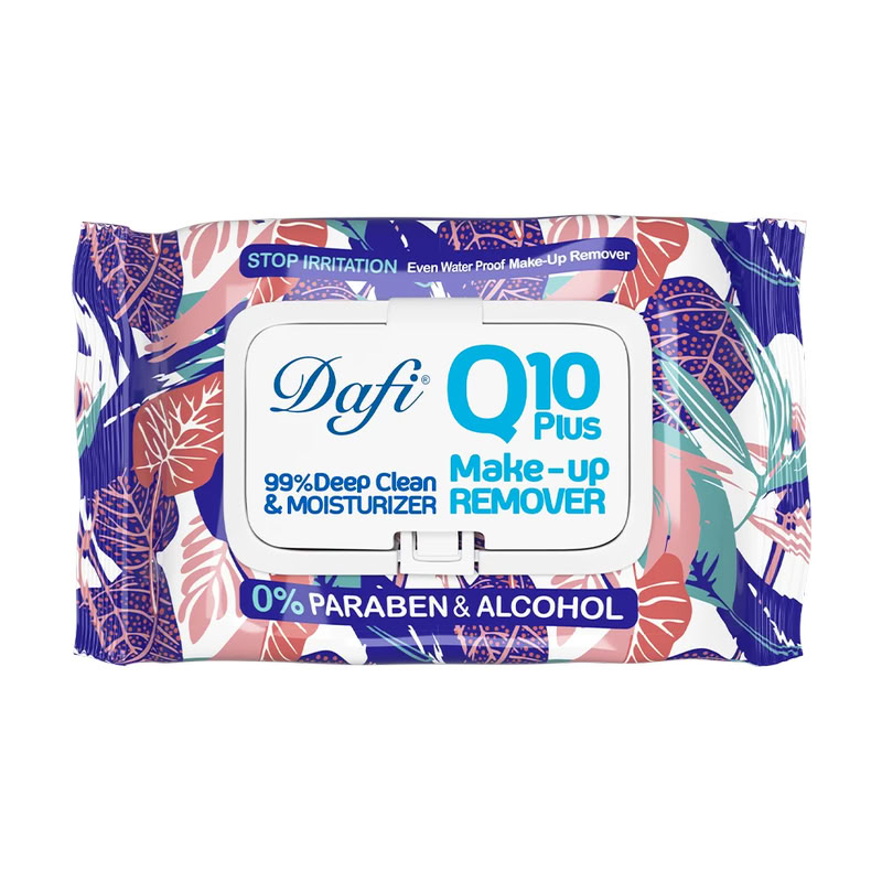 دافی (Dafi) - دستمال مرطوب پاک کننده آرایش Q10 - طرح گلدار 50 عددی - ضد چروک و جوانساز