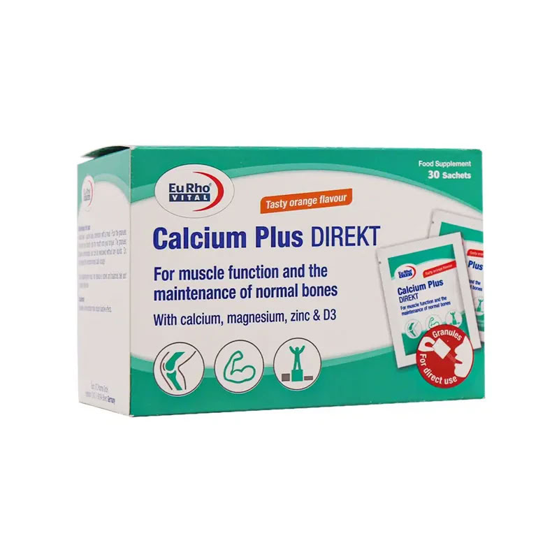 ساشه کلسیم پلاس یوروویتال (30 عددی) | پودر دایرکت (بدون نیاز به آب) | کلسیم، D3 و K2