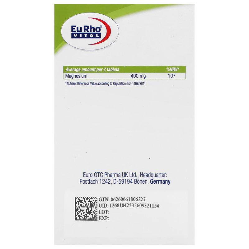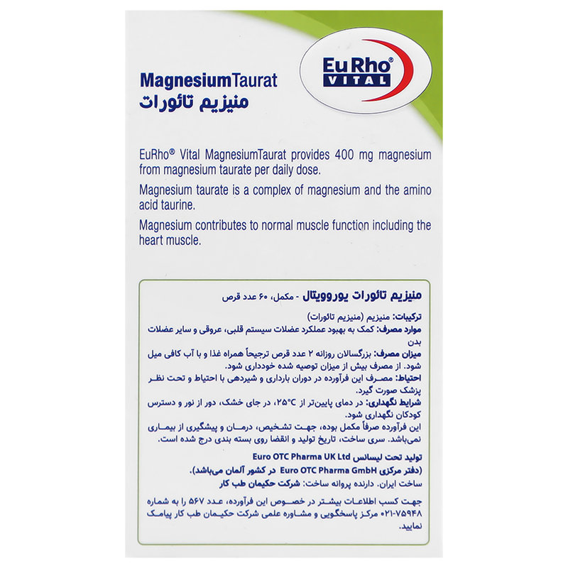 قرص منیزیم تائورات یوروویتال | محافظ قلب و آرامش‌بخش اعصاب 60 تایی