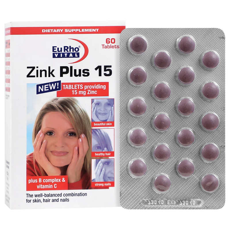 قرص زینک پلاس یوروویتال (Eurho Vital Zinc Plus 15mg) | 60 عدد | دوز ایمن برای مصرف طولانی مدت | تقویت رشد مو و سیستم ایمنی | تحت لیسانس آلمان