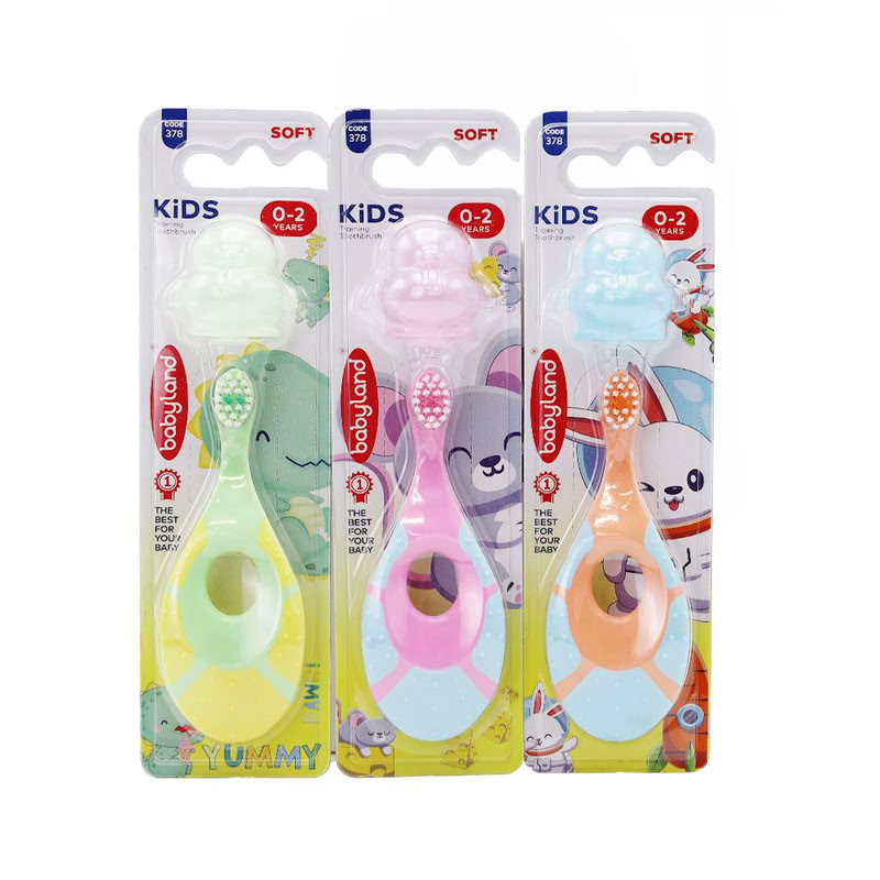 بی بی لند - مسواک آموزشی کودک - کد 378 - مناسب 0 تا 2 سال - دارای شیلد محافظ حلق - دسته ارگونومیک - پرزهای نرم