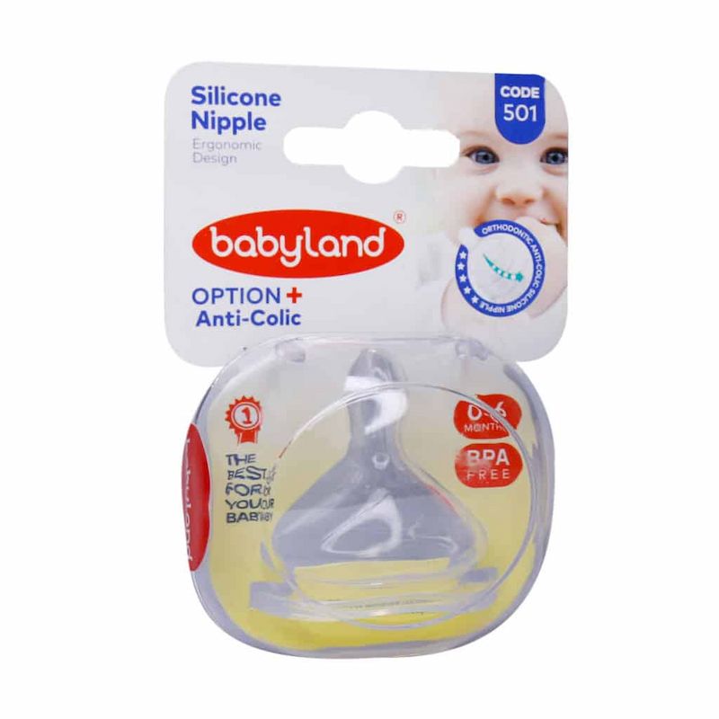 بی بی لند (Baby Land) - سرشیشه دهانه عریض (Wide Neck) - سایز 1 (جریان آهسته) - کد 501 - مشابه سینه مادر مناسب 0 تا 6 ماه