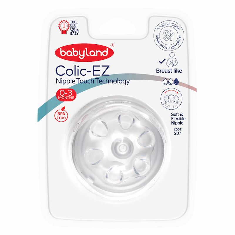بی بی لند (Baby Land) - سرشیشه کولیک ایز (Colic Ease) - سایز 1 (جریان آهسته) - کد 207 - ضد نفخ تخصصی (0 تا 6 ماه)