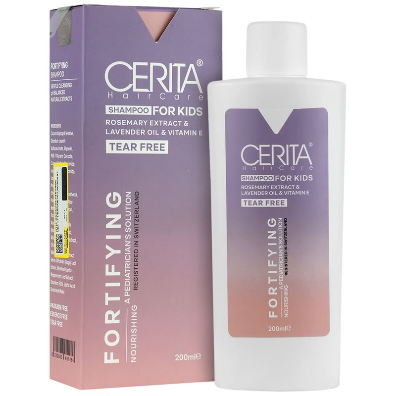 سریتا (Cerita) - شامپو تقویت کننده کودکان (Fortifying Kids Shampoo) - 200 میل - غنی شده با پروتئین جوانه گندم و رزماری - ضد گره و افزایش ضخامت مو
