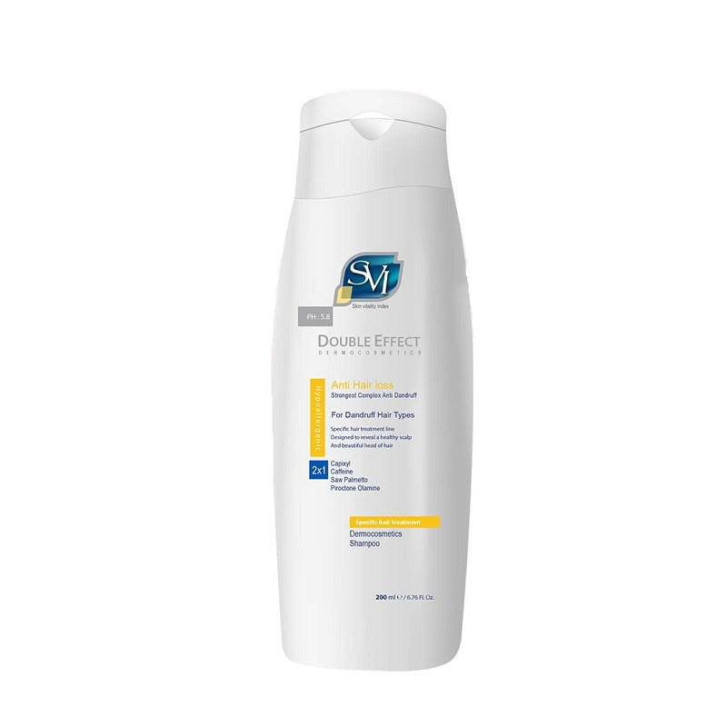 شامپو ضد ریزش و ضد شوره SVI (اس وی آی) مدل Double Effect (دابل افکت) - کنترل همزمان ریزش و شوره چرب - 200 میلی‌لیتر