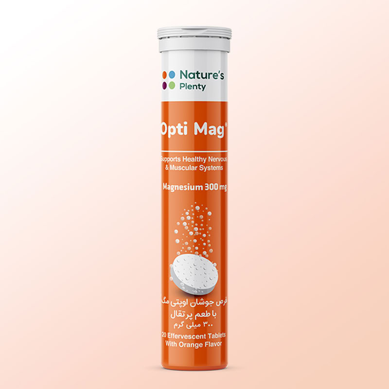 قرص جوشان منیزیم 300 میلی گرم اپتی مگ طعم پرتقال 20 عددی OptiMag Magnesium 300 Effervescent