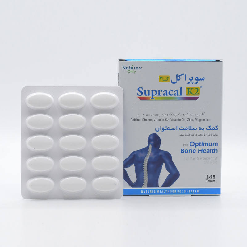 قرص سوپراکل K2 (30 عددی) | نسل جدید کلسیم سیترات + K2 | تخصصیترین فرمول ضد پوکی استخوان