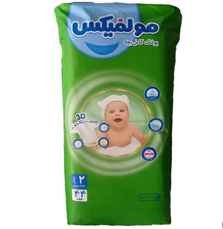 مولفیکس (Molfix) - پوشک بچه سایز 2 (Small) - بسته 44 عددی - مناسب 3 تا 6 کیلوگرم - تکنولوژی 3 بعدی و عصاره آلوئه‌ورا - ضد حساسیت